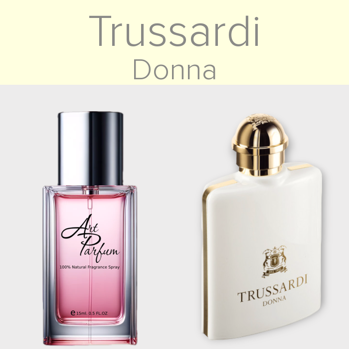 Donna від Trussardi – це аромат, що поєднує в собі свіжі цитрусові та ніжні квіткові ноти. Верхні ноти лимону, юзу та водяної лілії створюють бадьорий початок, що переходить у серце з квітки апельсину, чаю та жасмину. Базові ноти пачулі, кедра та сандалового дерева надають аромату глибину і стійкість, створюючи витончений і елегантний шлейф.